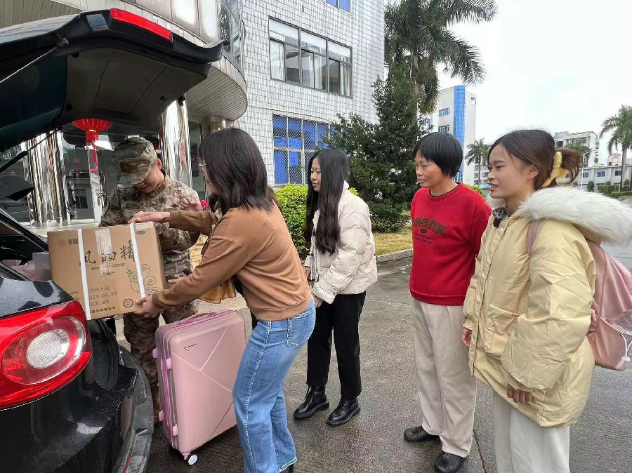 2024年2月6日,浙江某海島駐軍部隊同志到漳州水仙藥業(yè)股份有限公司慰問軍屬郭蘇怡同志,并代表部隊邀請和接送郭蘇怡到部隊參觀和與愛人團聚過新年。