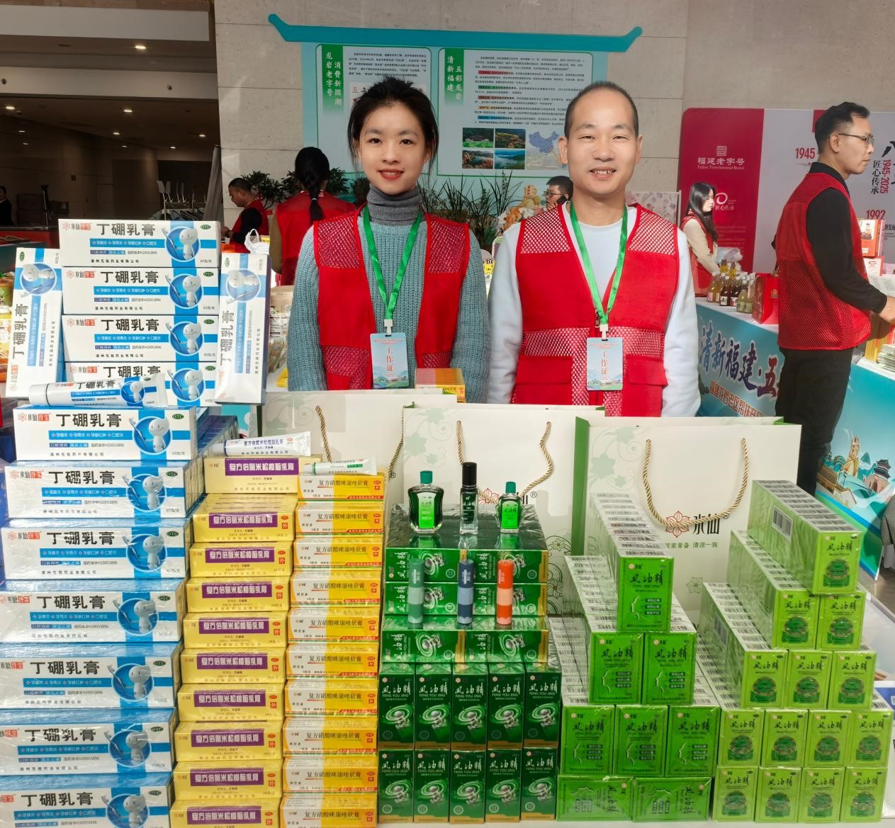 本次活動(dòng)為福建本土優(yōu)質(zhì)企業(yè)搭建了傳遞品牌溫度、對(duì)接優(yōu)質(zhì)資源的高端平臺(tái)。活動(dòng)現(xiàn)場(chǎng),水仙藥業(yè)的展位憑借濃厚的老字號(hào)氛圍以及高國(guó)民度的產(chǎn)品,吸引了眾多往來(lái)咨詢、體驗(yàn)的用戶。作為省制造業(yè)單項(xiàng)冠軍產(chǎn)品,水仙牌風(fēng)油精承載著幾代人的記憶,清涼止癢、驅(qū)風(fēng)止痛,是日常居家、辦公及出行的必備好物;此外,為口腔健康保駕護(hù)航的丁硼乳膏,以及皮膚外用藥明星產(chǎn)品無(wú)極膏和拜尼多,均吸引了不少關(guān)注。同時(shí),公司新品草本薄荷清涼棒憑借醒神通鼻的核心功效,搭配一管兩用、小巧便攜的貼心設(shè)計(jì),成為現(xiàn)場(chǎng)又一爆款單品。工作人員耐心細(xì)致地講解每款產(chǎn)品的功能作用及使用場(chǎng)景,將老字號(hào)的匠心與對(duì)健康的守護(hù)傳遞給每一位用戶。